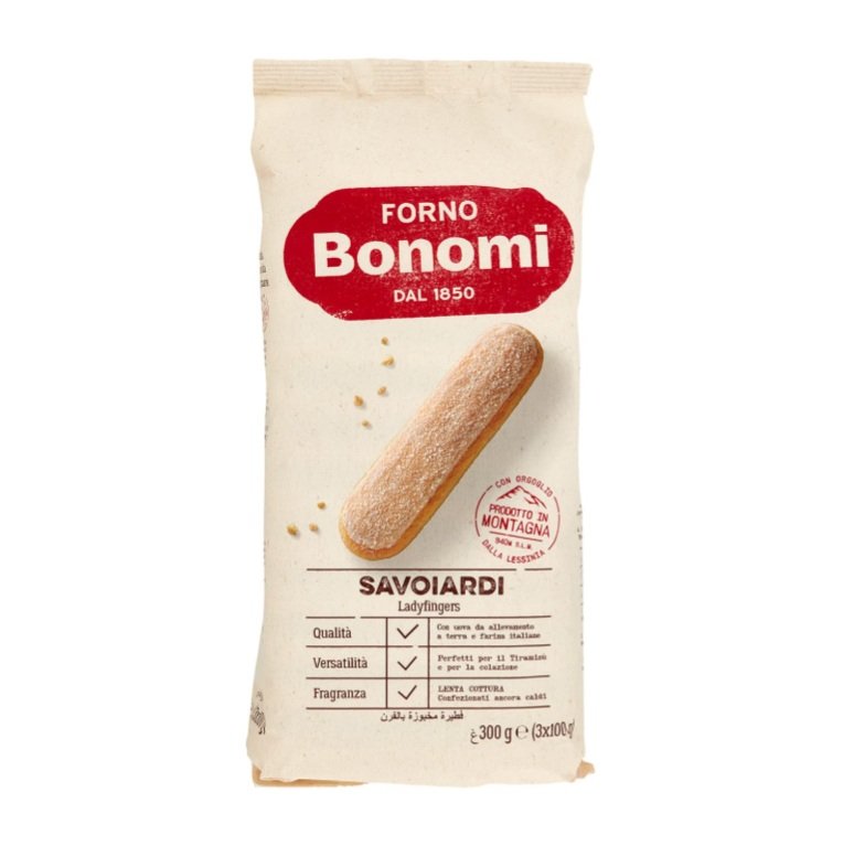 Atraskite itališkąjų skonių pasaulį su FORNO BONOMI savojardi sausainiais – lengvais, puriais ir švelniai saldžiais sausainiais, kurie taps nepakeičiamu ingredientu ruošiant autentišką tiramisu arba tiesiog puikiai tiks pasilepinti su mėgstama kava. Kiekvienoje pakuotėje rasite kruopščiai iškeptus, aukštos kokybės sausainius, kurių šviesiai auksinė spalva ir ypatingai minkšta tekstūra pavers jūsų desertus ir užkandžius tikru džiaugsmu. Puikiai tinka tiek kūrybiškoms konditerinėms idėjoms, tiek kasdieniam pasisaldinimui. Pakuotės dydis: 400 g.