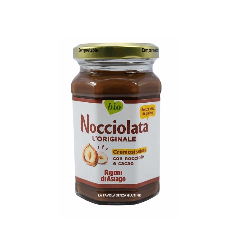 Atraskite nepakartojamą skonį su ekologišku Nocciolata L’Originale lazdynų riešutų ir kakavos kremu be palmių aliejaus! Šis gardus, švelnaus rudos spalvos kremas puikiai tinka ne tik pusryčiams ant skrudintos duonos, bet ir kaip užkandis, ingredientas desertams ar gardus priedas prie vaisių. Kiekviename indelyje – aukščiausios kokybės ingredientai, kurie džiugins kiekvieną smaližių. Svoris: 350 g. Tai ideali dovana ir puikus pasirinkimas visai šeimai.