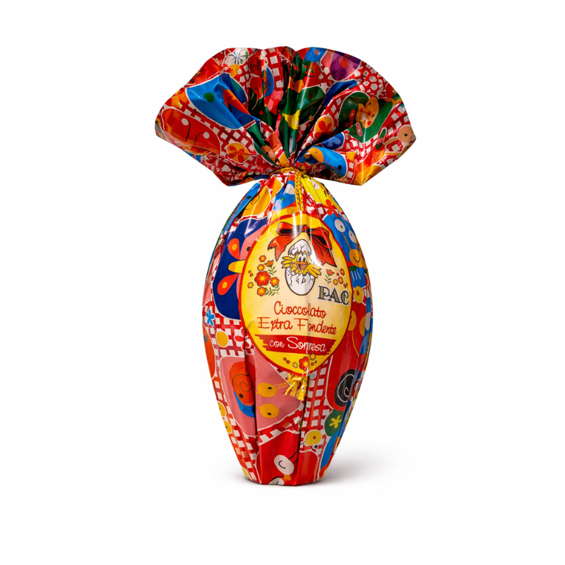I.P.A.C. Cioccolato Extra Fondente – žaismingas ir spalvingas Velykinis kiaušinis su intensyvaus skonio juoduoju šokoladu.